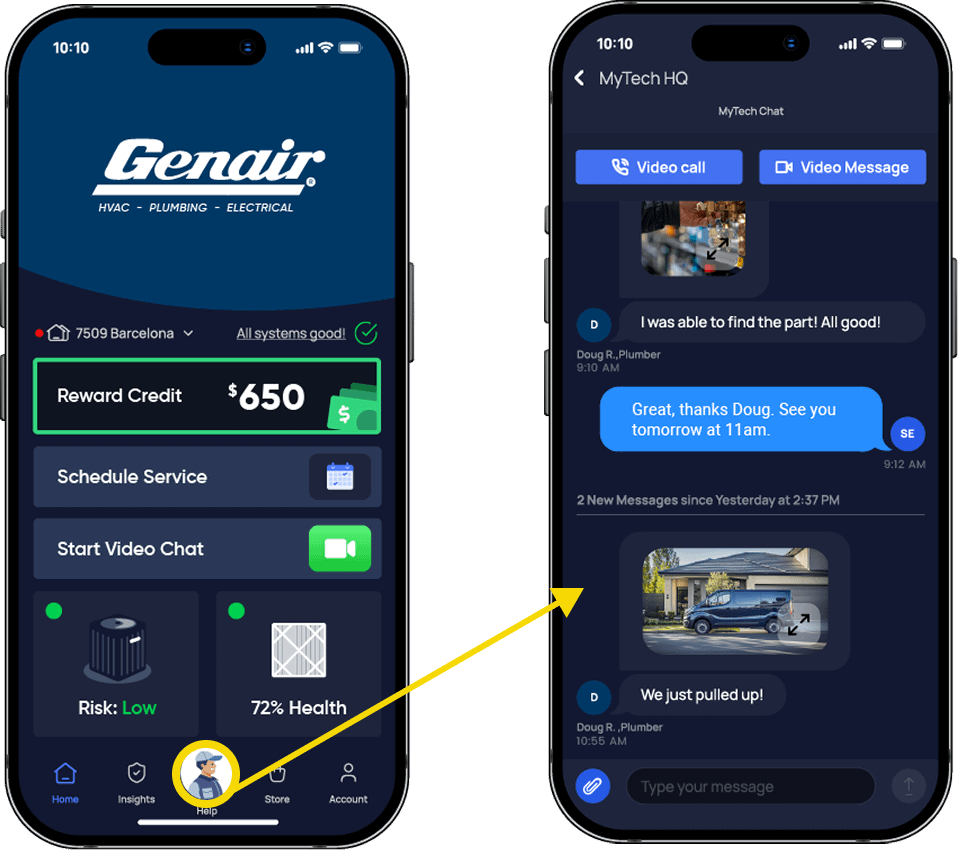 Leverage 24/7 system health alerts & water detection, live chat, in-app scheduling, filter replacements & more.